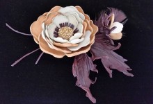 brooch made of genuine leather, decorated with beads and artificial stones.