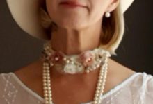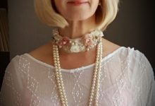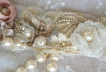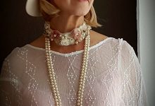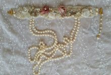 made of natural Japanese cultured pearl (8mm.), silk, handmade lace, beads.