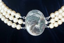 Necklace made of natural cultured Japanese 8 mm. pearl and mother-of-pearl clasp. Artist Marina Soutyrine. #BOHIMI #art #marinasoutyrineart #handmade #set #jewerly #necklace #stone #company #presents #fashionshow #sell #buy #pearl #mother of pearl