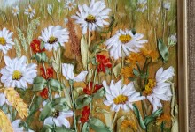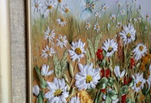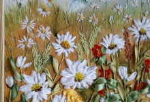 Вышивка выполнена шелковой и атласной лентами на масленном холсте. Авторская работа.